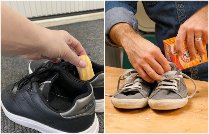 Еще один вариант – сделать поглотитель запаха из соды и кукурузного крахмала. Смешайте их в равных пропорциях, насыпьте в небольшие мешочки или обычные носки, крепко завяжите и положите в обувь на сутки. Подобную процедуру следует повторять минимум раз в месяц для профилактики неприятного аромата. Если же вам нужно привести в порядок открытую обувь, например, сандалии или босоножки, положите их в полиэтиленовый пакет, насыпьте несколько столовых ложек соды, хорошо потрясите и оставьте на 24 часа, чтобы средство подействовало.