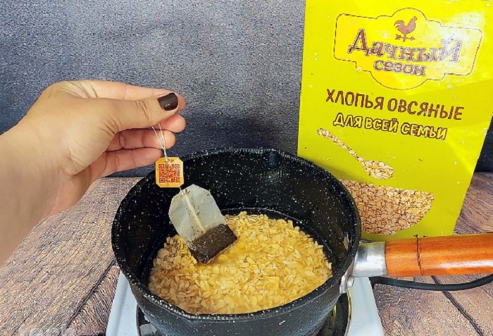 Кладите в кашу чайный пакетик.