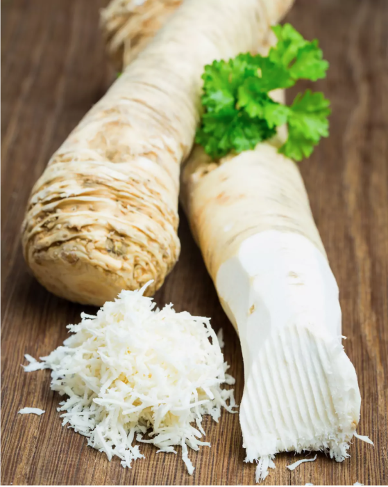 Хрен неприхотливая культура, которая не требует ухода и растёт на одном месте десять лет. Он подходит для супов и маринадов, но может при росте захватывать даже соседние участки, потому для него делают временные грядки. Размножают его черенками, высаживая их весной или осенью на глубину в четыре сантиметра, под углом в 45 градусов. Хорошо будет расти рядом с картофелем и плохо рядом с клубникой. Подкармливать его можно аммиачной селитрой, а также сернокислым калием.
