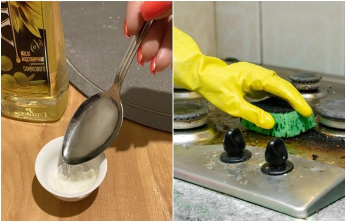 Почистите плиту средством из соды и масла