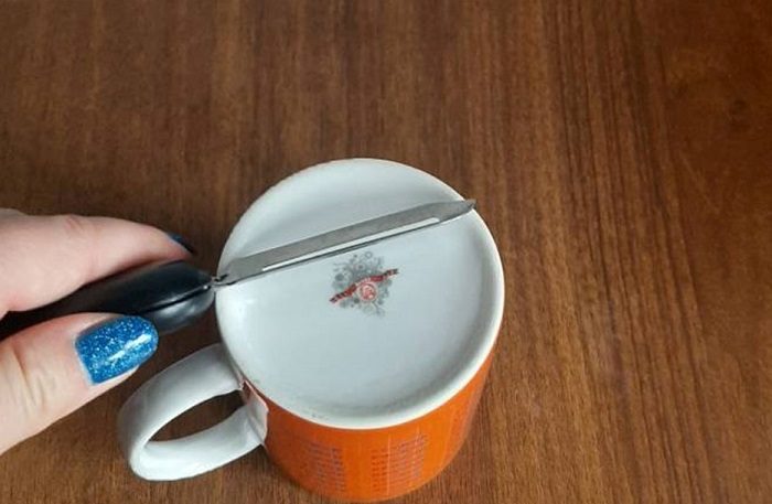 Чтобы не покупать новую овощечистку, предлагаем восстановить работоспособность старой. Для этого возьмите обычную керамическую кружку, переверните ее и пройдитесь лезвием по шершавому основанию. Кстати, таким образом можно точить также кухонные ножи и ножи от блендера – попробуйте!