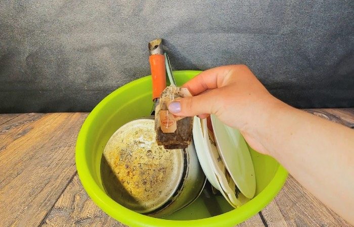 Использованные чайные пакетики не стоит сразу же отправлять в мусорное ведро. Гораздо более экологичнее дать им еще один шанс. Тем более что с их помощью можно без труда и бытовой химии отмыть грязную посуду. Налейте в тазик горячую воду, опустите туда посуду и чайные пакетики, после чего оставьте на ночь. А утром просто сполосните посуду под проточной водой. Результат вас точно поразит.