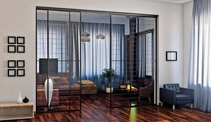 Для разграничения пространства используйте стеклянные перегородки.