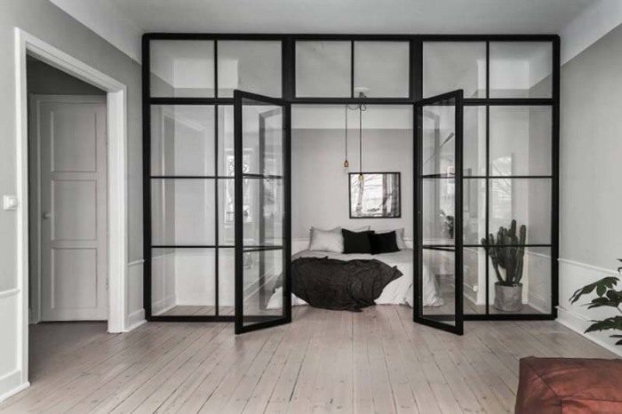 Прозрачные межкомнатные двери — отличный вариант для небольших помещений.