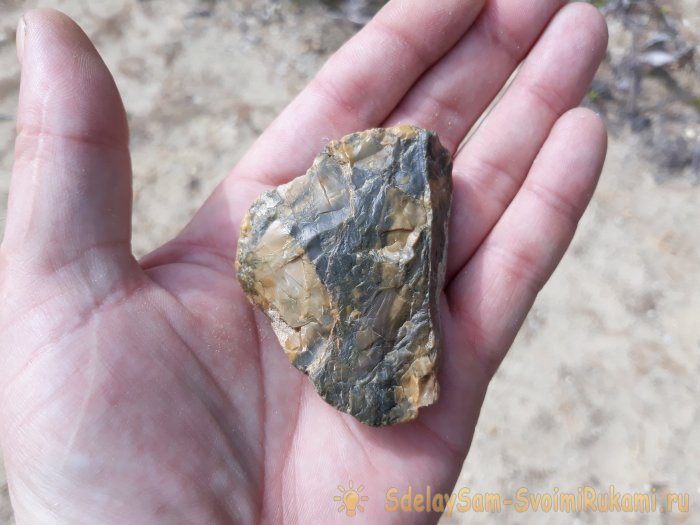 То, что искру, пригодную для воспламенения трута, можно выбить двумя камнями – не более чем стереотип! Нужен именно металл! В наше время металлические предметы окружают человека повсюду. Древние люди, которые открыли для себя огонь, научились со временем самостоятельно добывать огонь с помощью камня и куска железного колчедана – минерала, с большим содержанием железа. Его ещё называют пиритом. Металла в те далёкие времена, по понятным причинам, не было, потому вместо него с успехом пользовались куском этого минерала. Этот способ может помочь и какому-нибудь современному грибнику, или сборщику ягод, имевшему неосторожность заблудиться. Именно эта категория любителей активного отдыха на природе наиболее подвержена риску заблудиться, так как эти люди вынуждены постоянно перемещаться с места на место в поисках грибов и ягод. В отличии от пеших туристов, которые уже проложили маршрут на карте, и имеют точную цель, а так же необходимые гаджеты для определения точного местоположения, грибники чаще всего отправляются в лес имея только нож и тару под нужные дикоросы. Заблудившийся в лесу человек, не имеющий с собой никаких средств добычи огня (или же утративший их в пути), имеет на порядок меньше шансов на быстрое спасение, чем его более запасливый коллега. Во-первых; огонь – это неплохая защита от возможных нападений диких зверей. Потом, это тепло ночью, и более приемлемая для человека еда. Ну и, в конце концов, это способ привлечь внимание поисковых отрядов, в случае если Вас хватятся дома. Задача значительно упростится, если имеющийся с собой нож, будет выполнен из хорошей, оружейной стали, с большим содержанием углерода и хрома. Такая сталь при ударе о камень лучше искрит, чем обычное железо. К подбору камня тоже следует подойти с толком. Мягкие породы, типа щебня, категорически не подойдут. Необходимы твёрдые кварциты. Это может быть и гранит, и обычная белая или прозрачная галька. В общем, твёрдые породы! В идеале, конечно же, кремень! Кремень чаще всего можно найти на берегу реки, ручья, или же в сосновых борах, в корневищах поваленных ветром старых сосен.