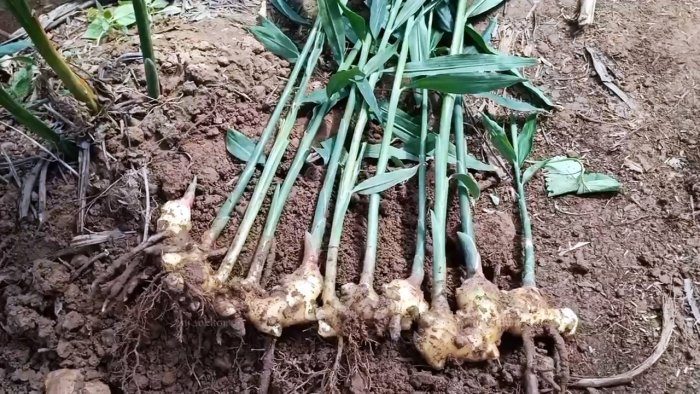 Через 150 дней можно собирать плоды и выкапывать корень имбиря. Растения находятся не глубоко в земле, поэтому для выкапывания используйте железный совок или маленькую лопатку.