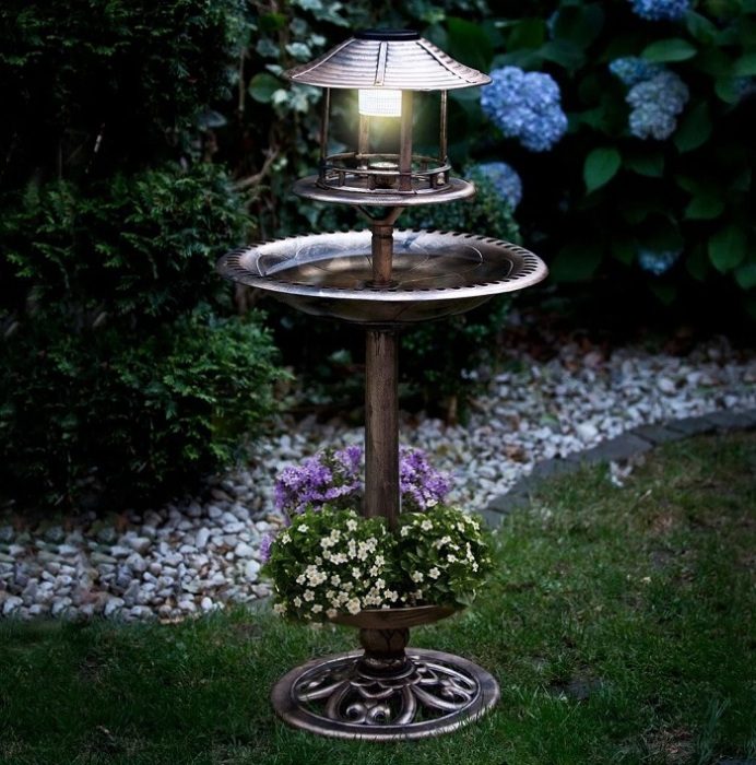 Такая кормушка-поилка станет настоящим украшением дачного участка.