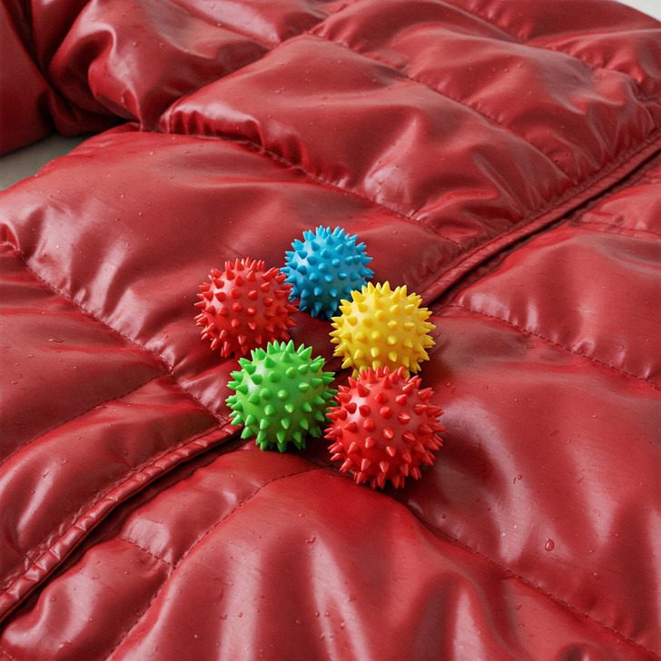 Лучше всего стирать пуховик в стиральной машине с фронтальной загрузкой. В устройстве с верхней загрузкой легко повредить куртку и испортить ее наполнитель. А сушить пуховик лучше всего в компании с теннисными или массажными мячиками, чтобы равномерно распределить наполнитель и разбить получившиеся при стирке комки.