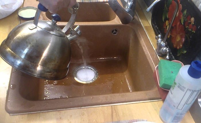 Кипяток можно использовать лишь в тандеме с содой и уксусом.