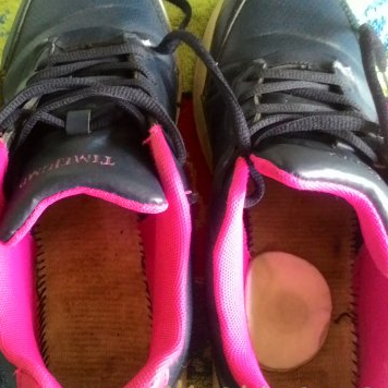 После того как обувь просохнет, возьмите немного ароматизированного талька и посыпьте внутри. Учтите, что носки нужно будет надеть светлые, чтобы на темных не оставалось следов талька.