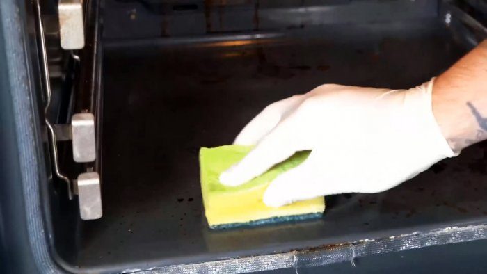 Последняя наносится губкой или кистью на внутренние грязные поверхности в духовке. В таком измазанном виде та должна постоять ночь или как минимум 8 часов с закрытой дверцей.