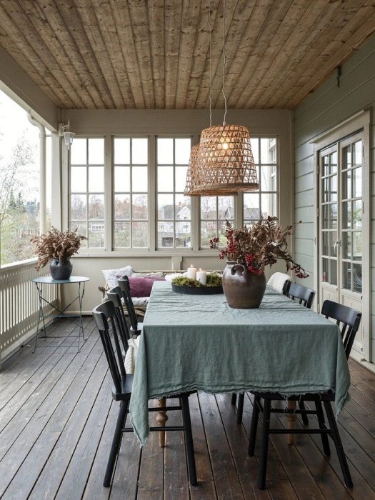 Если в вашем доме есть веранда, вы настоящий счастливчик, ведь ее можно обустроить как-угодно. Обеденная зона, место для отдыха, детская игровая комната – и это далеко не весь список того, что можно сделать на террасе.