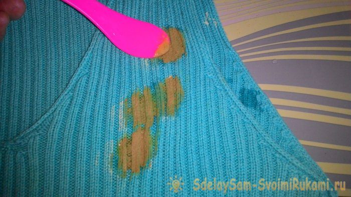 После высыхания одежды от пятен не останется и следа. Этот метод хорош еще и тем, что его можно использовать не только на белых, но и на цветных тканях.