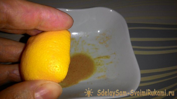 Развожу горчицу с лимоном, у меня получается кашица, которую я наношу на пятна до полного высыхания.