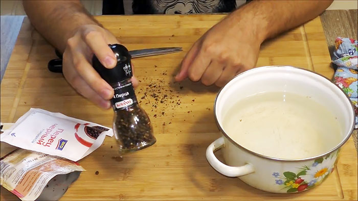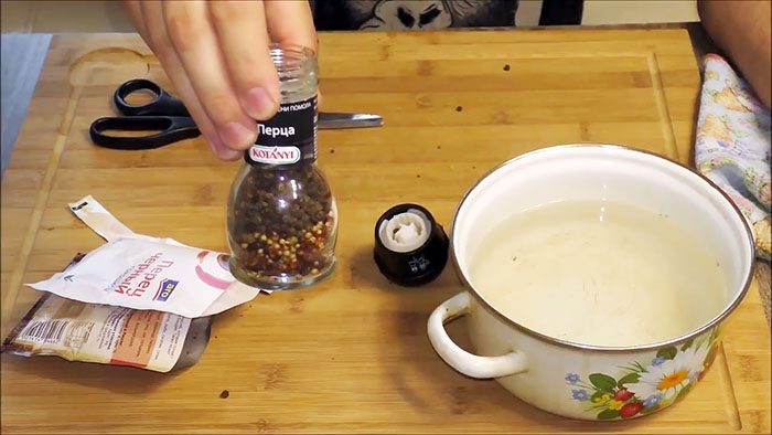 Впитав воду можно перейти к заправке пряностями. Чтобы не делать это часто, лучше сразу засыпать в мельницу 2 упаковки перца. Можно сделать смесь любимых пряностей и потом сразу молоть их вместе.