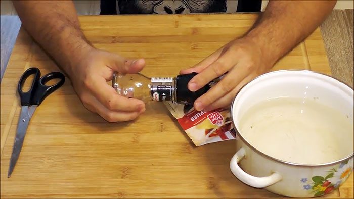 Хитрость одноразовой мельницы в том, что производитель сделал особую фиксацию жерновов, чтобы их нельзя было снять не сломав. Но это возможно. Нужно частично погрузить мельницу пластиковой частью в кипяток на 10 сек. Находящиеся в горячей воде фиксаторы на горловине размягчаться и расширяться больше, чем стекло пузырька.