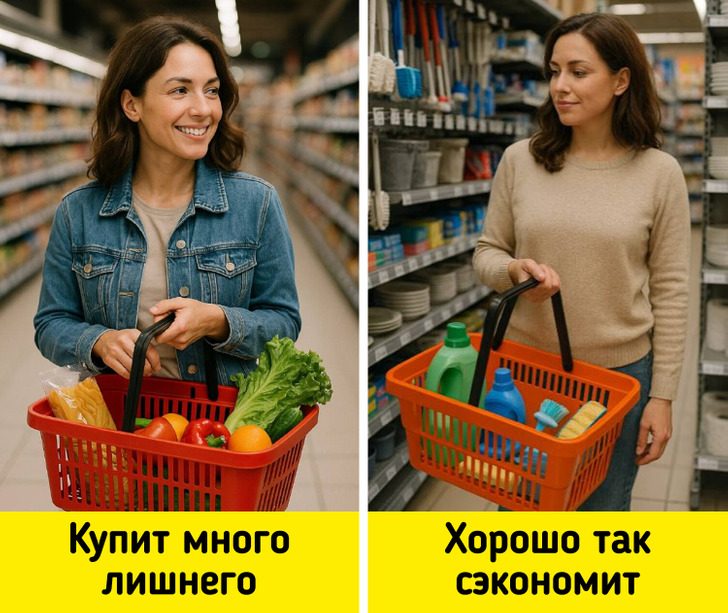 Попробуйте делать покупки задом наперед, начиная с конца магазина. Супермаркеты устроены так, что все акции и соблазнительные предложения расположены ближе ко входу. Они привлекают внимание, и мы часто набираем лишнее. Кроме того, на уровне глаз обычно размещаются дорогие и яркие марки. Чтобы избежать этого, начните с хозяйственного отдела, затем переходите к основным продуктам — крупам, мясу и заморозке. Проходя мимо сладостей и готовых салатов, вы будете меньше поддаваться импульсивным покупкам и соберете только нужные товары.