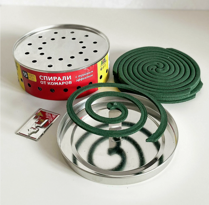 Существуют и далёкие от технологий альтернативы, когда тратить даже небольшие суммы на подобные вещи не хочется. Есть совсем дешевые варианты. Один из них это специальные спирали — в них тлеет элемент, содержащий в себе инсектицид и аллетрин. Такую спираль можно подвесить, а под ней расположить нагретую плоскую ёмкость, это может быть блюдце или плошка, железная платина, плитка кирпича. Пламени быть не должно, спираль после поджига должна начать выделять дым. На целых три метра вокруг не будет таким образом ни одного комара. Просто развесив несколько штук по периметру беседки или иного места отдыха. Но в помещении ими можно пользоваться только тогда, когда там нет людей, в ином случае можно надышаться этого едкого дыма, а после обязательно проветрить помещение. А вот для водоплавающих спираль может быть опасна, так что лучше рядом с водоёмами их не использовать. Из плюсов это, конечно, автономность и низкая цена, а вот из минусов — в помещении использовать необходимо с осторожностью.