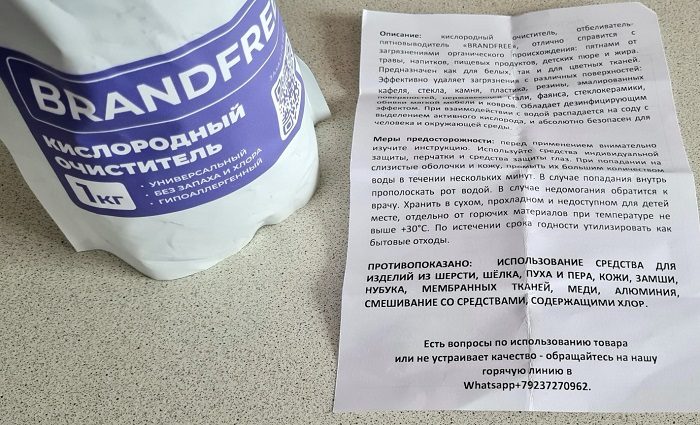 Инструкция к кислородному очистителю.