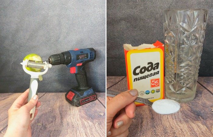 Если вам нужно почистить много яблок, то стоит взять дрель. Плод необходимо надеть на сверло. Рядом необходимо держать овощечистку. После включения дрели аккуратно поднесите овощечистку к яблоку. Таким образом можно за считанные секунды очистить фрукт. Но для начала следует делать это вдвоем, поскольку держать одновременно дрель и овощечистку достаточно сложно.