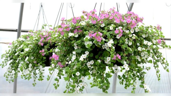 Бакопа ещё не очень популярна, но это ампельное растение идеально подходит для того, чтобы посадить его в кашпо для создания композиции. Цветки у бакопы алые и очень пышные, словно шаровидные облака. Бывают сиреневыми, белыми и розовыми, а купить его можно в любом магазине, несмотря на то, что оно есть не у всех в саду.