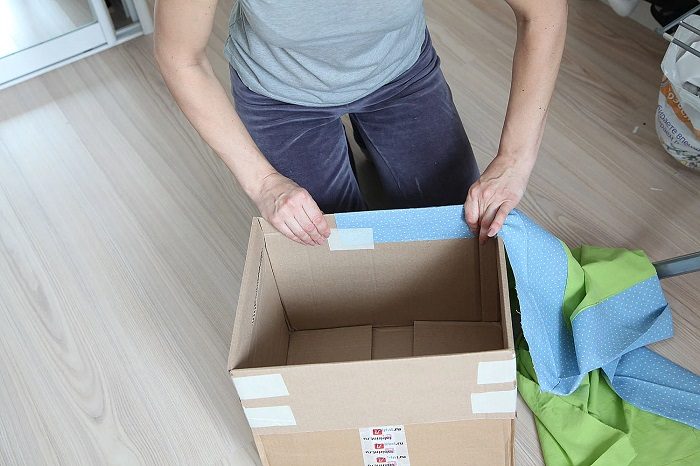 Оклейте картонную коробку тканью и используйте для хранения.