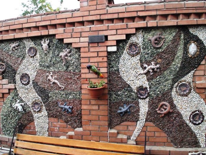 Украшение забора камнем