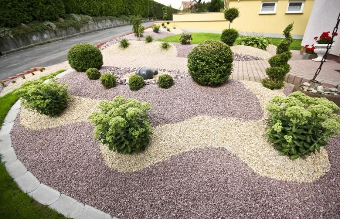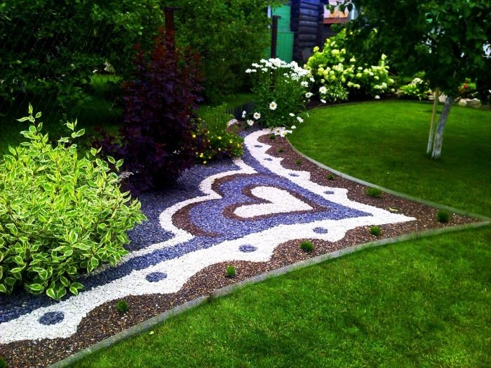 Она делается как из гальки, щебня и даже мраморной крошки, любых цветов. Этот вариант декорирования позволит создать любой рисунок на территории, которая будет под него отведена, сделать это не так сложно, а эффект от отсыпки получится просто невероятно привлекательным и экологичным.