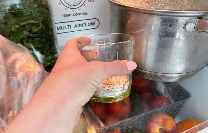 А уже после этого стоит воспользоваться нашей бытовой хитростью. Возьмите обычный стакан и насыпьте в него овсяные хлопья. Поставьте этот стакан в холодильник. Именно овсянка впитает остатки неприятного аромата и не позволит ему распространиться по холодильнику.