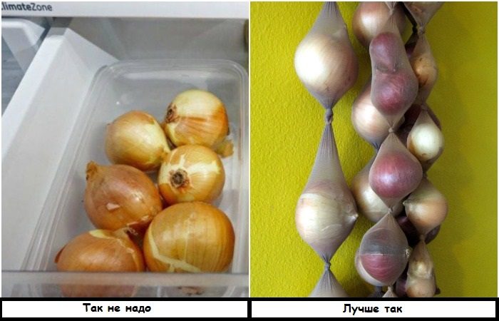 Храните лук не в холодильнике, а в колготках