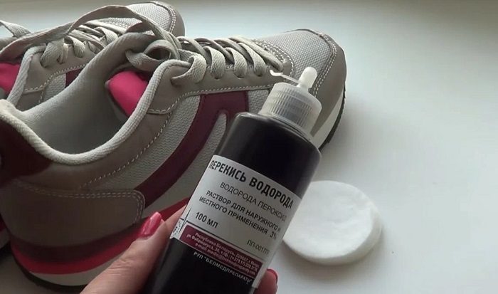 Перекисью водорода нужно протереть кроссовки изнутри.