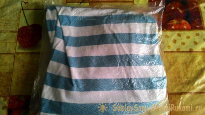 2. Затем свернуть футболку и положить в целлофановый пакет.