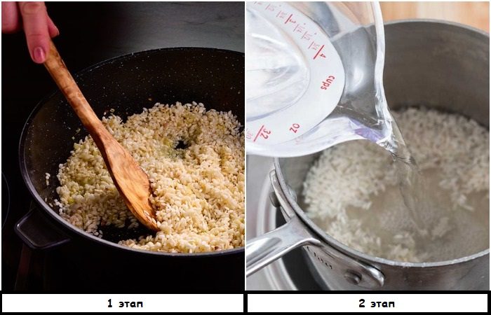 Сначала обжарьте рис, а затем залейте кипятком