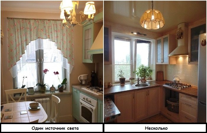 Чтобы микро-кухня визуально выглядела более просторно и не угнетала своим мрачным внешним видом, важно обеспечить ей достаточное количество света. Кроме того, это важно для удобного процесса готовки. Представьте: вы возвращаетесь домой после работы и идете на кухню готовить ужин. После тяжелого рабочего дня проводить время за плитой и так не хочется, а с плохим освещением готовка превращается в мучение.