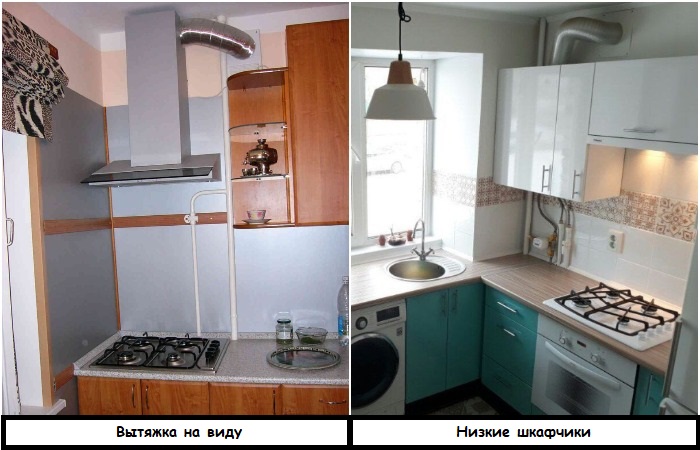 Дизайнеры часто повторяют, что в интерьере должен быть хотя бы один броский акцент, который станет центром композиции и будет привлекать внимание. В случае с кухней такой вещью часто становится стильная и броская вытяжка. Да, это отличное решение, которое выглядит потрясающе на картинках в дизайнерских блогах. Но оно абсолютно не подходит для маленькой кухни, где на виду нужно оставлять минимум вещей. Вытяжка будет зрительно дробить пространство на мелкие части и занимать много места.