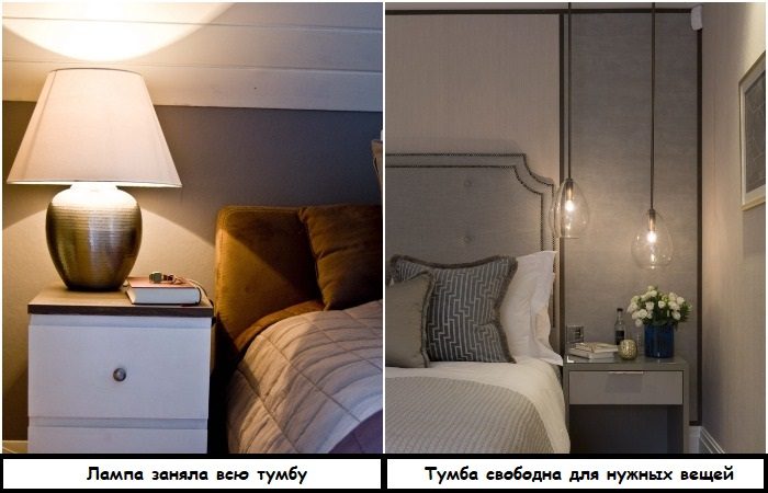 Прикроватная тумба, в зоне которой нет освещения – это деньги на ветер. Но как много места занимает настольная лампа! А ведь его можно было бы использовать для хранения более нужных вещей, например, книги или телефона. К счастью, вы можете сэкономить место, но для этого нужно выбрать подходящий вариант освещения.