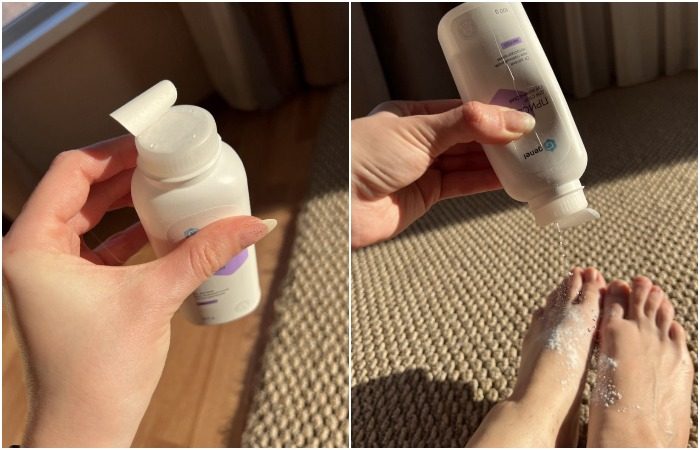 Присыпка помогает ногам не потеть и не издавать неприятный запах