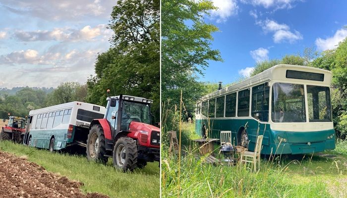Автобус отбуксировали на участок в сельскую местность Котсуолдса (Великобритания).