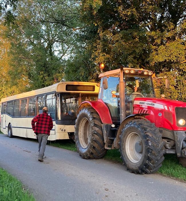 Ландшафтный дизайнер по образованию и неуемный экспериментатор по призванию, выходец из сельской местности Котсуолдса (Великобритания), после начала всемирного карантина, решил вернуться на ферму к родителям, чтобы сэкономить на аренде. Несмотря на то, что фермерство было увлекательным занятием и в деревне ограничения были не настолько жесткими как в городах, креативный дизайнер задумался о другом проекте, который мог бы занять его время. Поскольку он изрядно экономил на аренде, Люку пришла в голову идея купить что-нибудь полезное, за что он бы не потратил кучу денег, но при этом мог бы превратить в нечто особенное. В этот момент он увидел объявление о продаже старого автобуса BMC Falcon 2001 года выпуска, который давно находился на свалке (двигатель не подлежал восстановлению) всего за 1500 долларов.