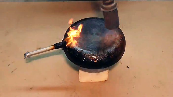 Если нагревать на огне эту кухонную утварь без содержимого, то температура прокаливания превысит рабочую, и нагар из жира и масла начнет отслаиваться от поверхности сковороды и даже непосредственно выгорать.