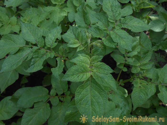 Поклонники биологического земледелия, принципиально не использующие синтетические удобрения на своем участке, в начале вегетации удобряют картофель либо сброженным настоем крапивы, окопника и травы (так называемое зеленое удобрение), либо раствором свежей навозной жижи (1:5), либо настоем куриного или любого другого птичьего помета (1:20).