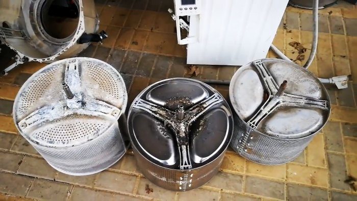 Одинаковой реакции нет, она зависит от физических и химических свойств материалов изготовления деталей. Влияние кислоты демонстрируется на примере трех баков стиральных машин. Если нержавеющая сталь не реагирует на кислоту, то силумин относится к ней крайне негативно. Силумин – самый используемый сплав в недорогих стиральных машинах. Химический состав – алюминий и кремний (до 22%), для улучшения физических параметров могут добавляться легирующие добавки. Но такие технологии увеличивают стоимость металла, что очень не нравится производителям дешевого сегмента бытовой техники.