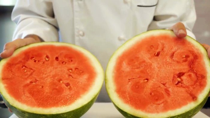 Отобрав арбуз по перечисленным критериям, можно рассчитывать, что он будет сладким и сочным. Однако существует риск нарваться на плод, выращенный и доведенный до зрелости стимуляторами роста. Вычислить его можно бросив кусочек мякоти в воду. Если она стала розовой, то арбуз лучше выбросить. У созревшего в нормальных условиях плода мякоть не покрасит воду, лишь сделает ее слегка мутноватой.