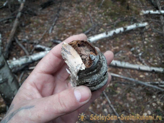 Понадобится оторвать от ствола сухой старый гриб.