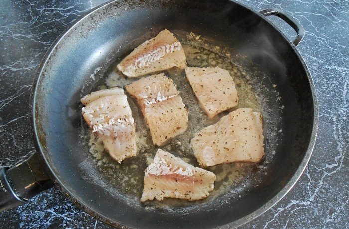 Рыбу нужно снимать со сковороде за пару минут до готовности