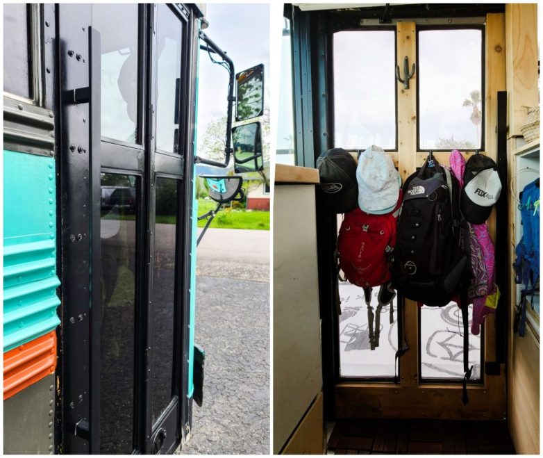 Сохранили оригинальную дверь школьного автобуса.