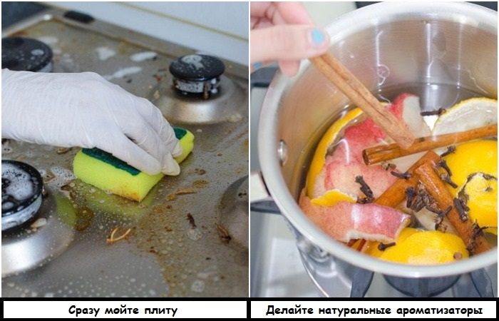 Важно не только избавляться от запахов еды, которые появляются во время готовки, но также наполнять кухню и остальные комнаты приятными ароматами. Для этого можно использовать специальные ароматические диффузоры, аромасвечи, интерьерные парфюмы. Предпочитаете натуральные способы? Тогда возьмите на заметку следующий лайфхак.