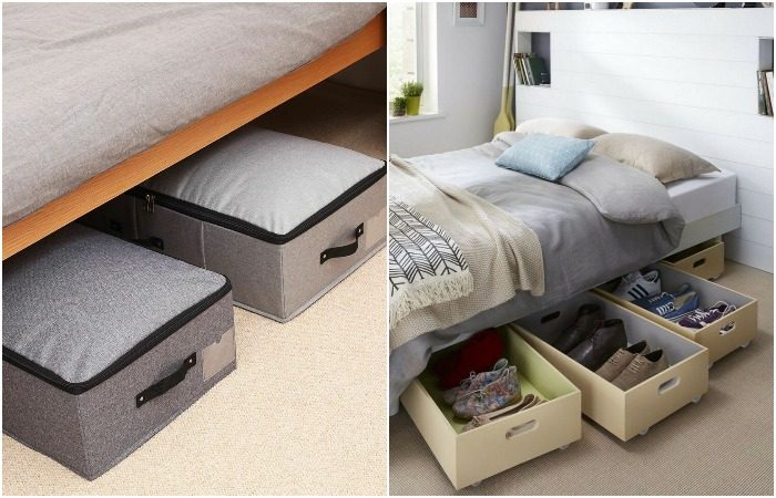 Обратите внимание: Чтобы вы без проблем могли выдвигать ящики из-под кровати, они должны быть снабжены колесиками и/или ручками. В противном случае доступность и удобство системы хранения окажется под вопросом.