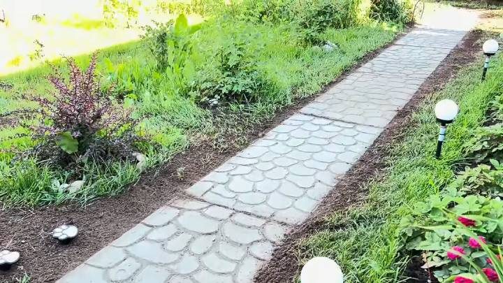 Столь удивительной красоты больше ни у кого не будет! А главное, такая дорожка прослужит долгое время. Как видите, сделать её абсолютно не сложно!