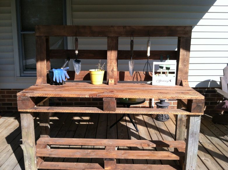 Из деревянных поддонов можно соорудить не только садовую мебель, а и полноценную рабочую зону. Из них легко собрать стол, стеллажи, полки или любые другие многофункциональные конструкции, которые пригодятся в повседневных делах. Такой уголок подойдёт для занятий творчеством, рукоделием, мелким ремонтом или любых домашних задач. Паллеты можно покрасить, обработать специальным защитным покрытыми, добавить колёсики, чтобы мебель была мобильной. Рабочую поверхность можно сделать более прочной, укрепив стеклом, фанерой, доской или плиткой. Полки и стеллажи из поддонов можно использовать для хранения рабочего инструмента, инвентаря, посуды, которой нечасто пользуешься, вещей и прочих мелочей. Как видите, даже из простых подручных материалов можно создать стильное и уютное пространство, где всё будет под рукой, да и работать в таком уголке будет гораздо приятнее и комфортнее.